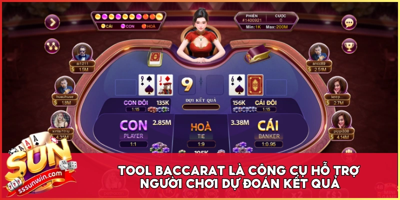 Tool Baccarat là công cụ hỗ trợ người chơi trong việc phân tích kết quả và dự đoán xu hướng của trò chơi Baccarat Sunwin. Các phần mềm này thường sử dụng thuật toán thống kê, dữ liệu lịch sử và xác suất để đưa ra gợi ý đặt cược hợp lý, giúp người chơi có cơ sở để quyết định thay vì dựa hoàn toàn vào may rủi.